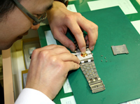 腕時計を使用していると、汗や皮脂などによりブレスレットの隙間にごみが詰まってしまいます。 それが原因でブレスレットのさびや破損が増えてきております。 衛生面を考えてもブレスレットは綺麗にしておきたいですね。 料金は1,000円~2,000円+消費税 となります。 作業時間は約30分(店内の混み具合にもよります) |