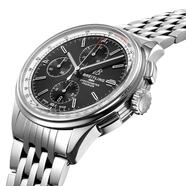 無骨なクロノグラフの時計が多いブライトリングですが、エレガントライン「プレミエ」からクロノグラフ付きのモデルが登場。