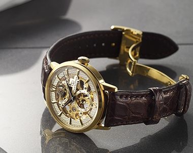 ステンレススチールケース(ゴールドメッキ)&ワニ革バンド
